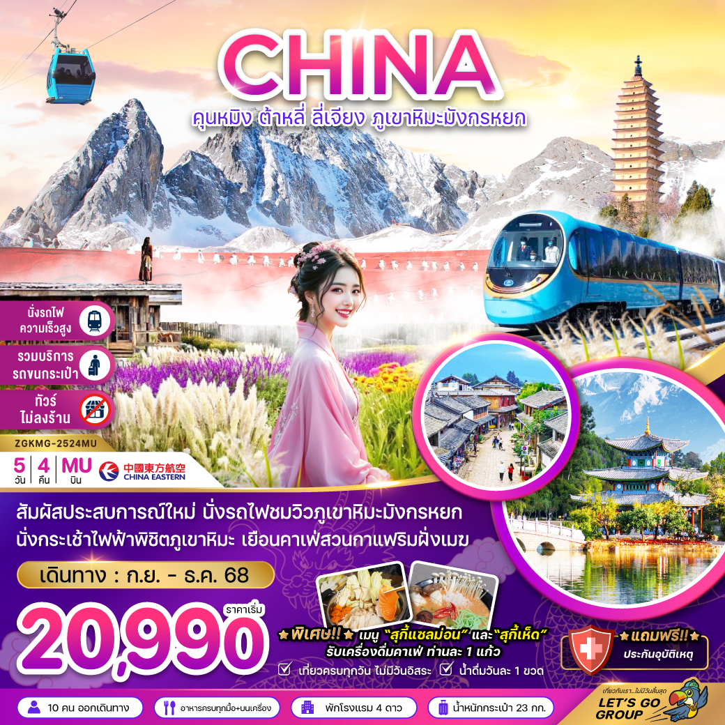 จีน คุนหมิง ต้าหลี่ ลี่เจียง ภูเขาหิมะมังกรหยก (นั่งรถไฟชมภูเขาหิมะ-ไม่ลงร้าน-รวมค่าขนกระเป๋า) 5 วัน 4 คืน BY (MU)