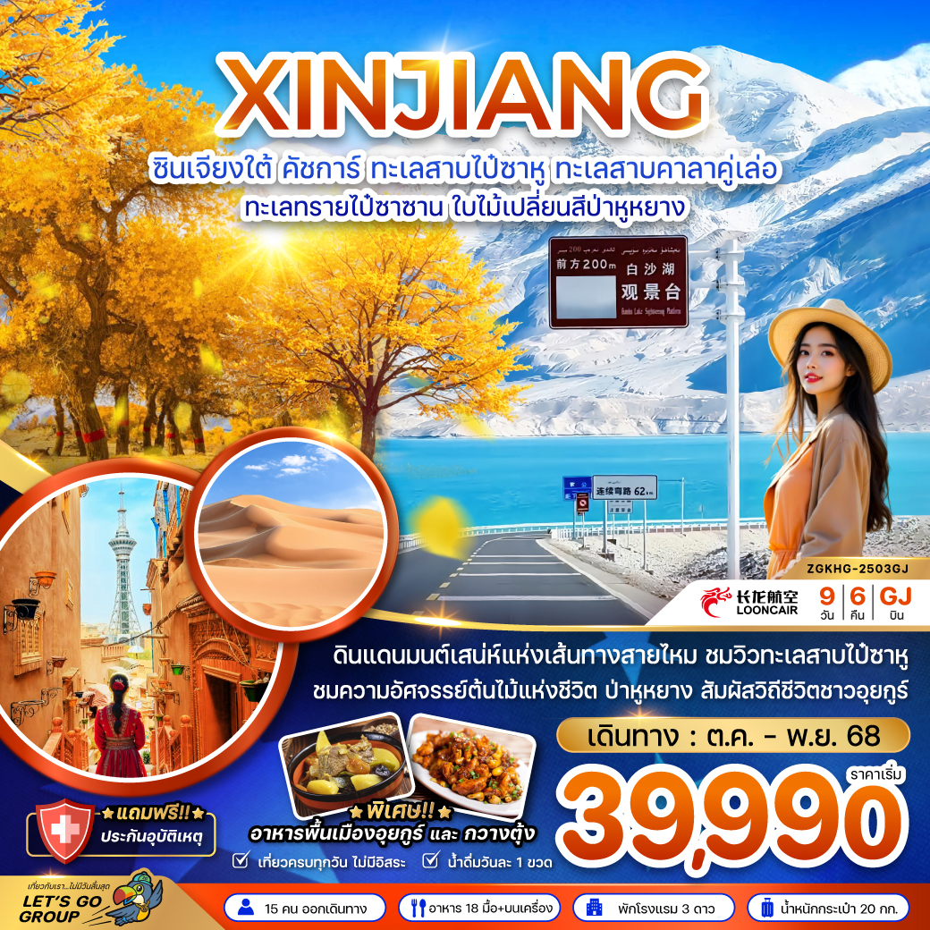 จีน ซินเจียงใต้ คัชการ์ ทะเลสาบไป๋ซาหู ทะเลสาบคาลาคู่เล่อ ทะเลทรายไป๋ซาซาน ใบไม้เปลี่ยนสีป่าหูหยาง (ไม่ลงร้าน) 9 วัน 6 คืน BY (GJ)