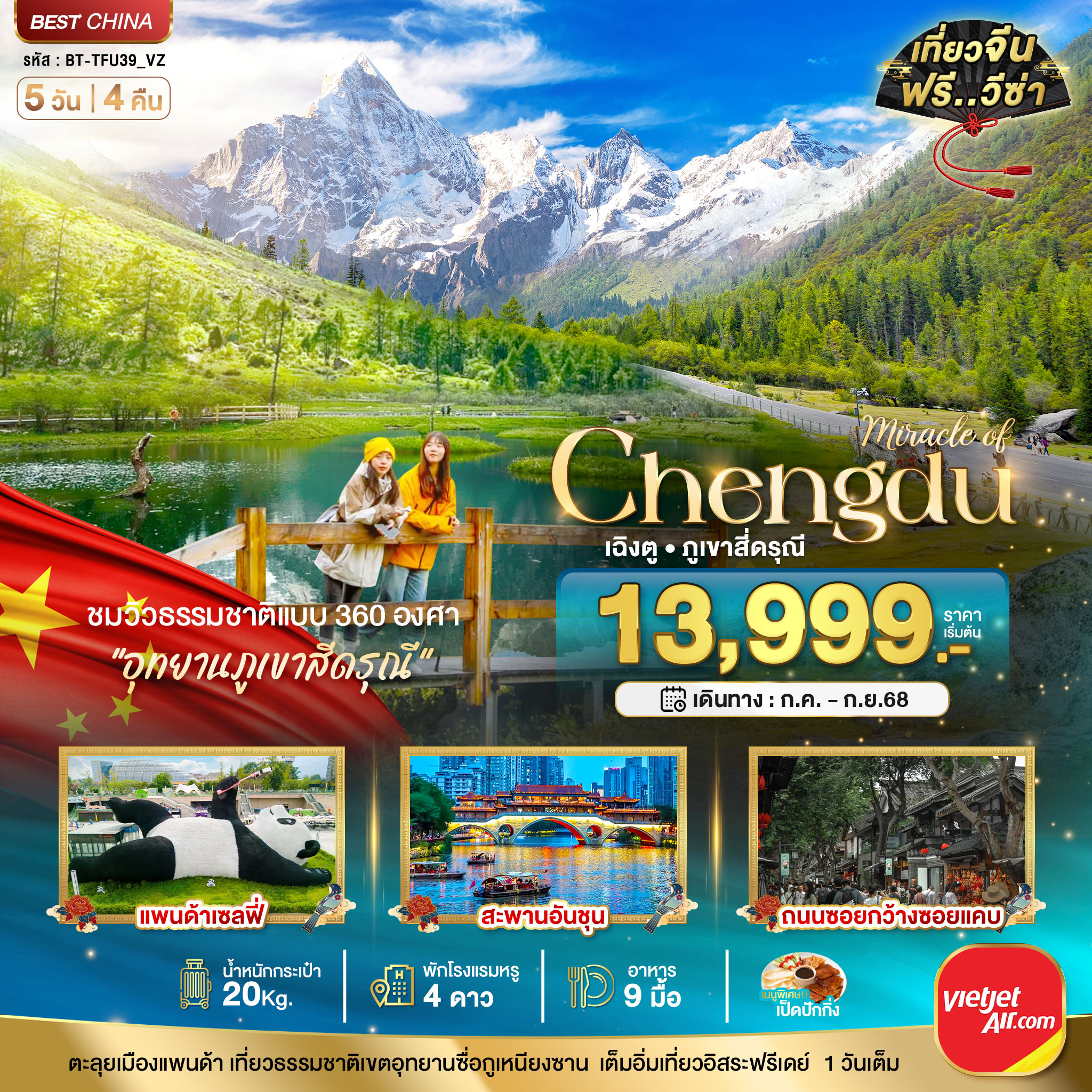 มหัศจรรย์…เฉิงตู ภูเขาสี่ดรุณี 5D4N By(VZ)